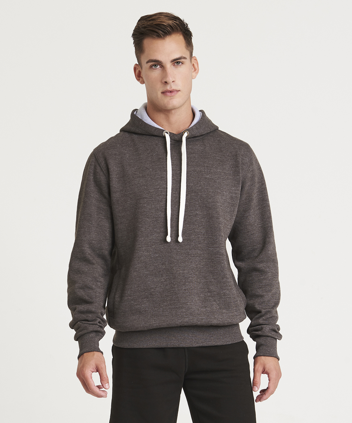 Overlock stitching detail throughout. Double fabric hood with Heather Grey waffle fabric inner. Chunky white flat lace drawcords. Deep ribbed cuffs and hem. Soft cotton faced fabric creates ideal printing surface. Simple tear out label makes it prefect for rebranding. Side panels for stylish fit. Side pockets. Worldwide Responsible Accredited Production (WRAP) certified production. Pull over Hoodie. Brushed inner fleece. WRAP certified. SEDEX certified. Vegan certified.