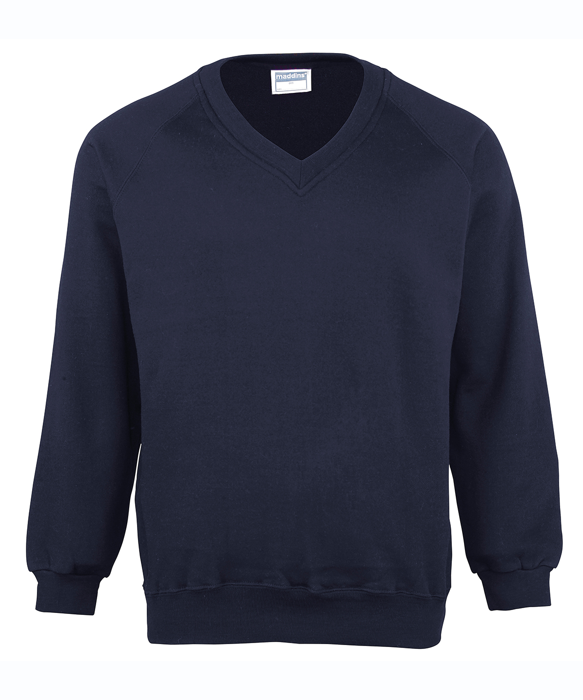 Easycare v-neck raglan sweatshirt with cover seamed mitred V, welt and raglan. Herringbone taped neck. Also available in kids.