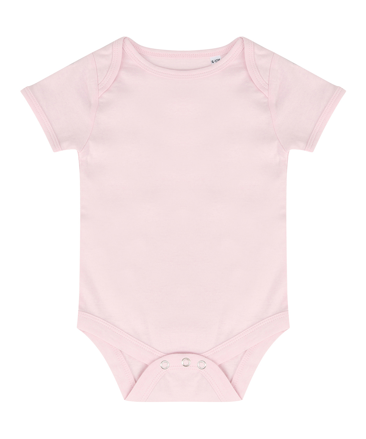 Short-sleeved bodysuit in single Jersey. Envelope neck. Binding on neck and cuff. YKK popper fastening at bottom. Size tab only. Oeko-Tex certified. BSCI certified.