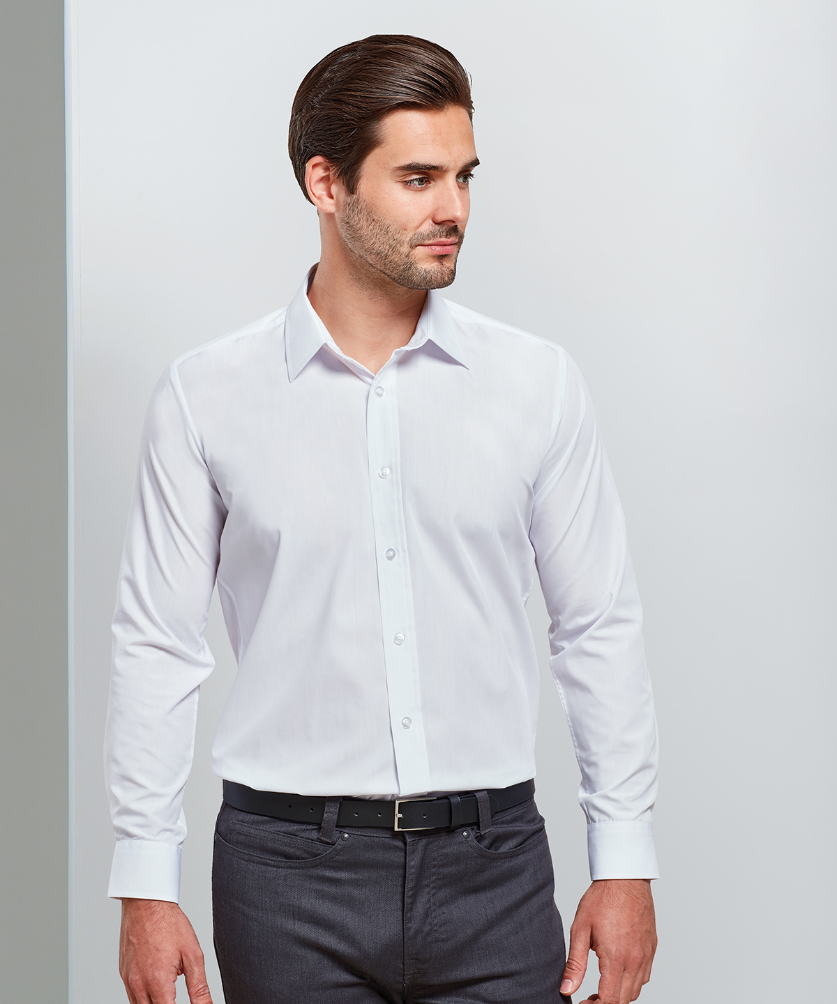 A men’s fitted Poplin shirt that offer a fashionable slim fit style. A stiff formal cut collar with double buttons to the cuff. Available in our bestselling colours from the Premier ‘Colours’ collection. WRAP certified. BSCI certified. Reach certified. SEDEX certified.