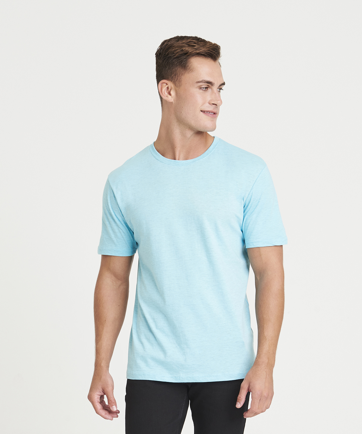 Modern fit. Short sleeves. Ribbed crew neck style with taped back neck. Twin-needle stitching detail on sleeve and bottom hem. WRAP certified. SEDEX certified. Vegan certified.
