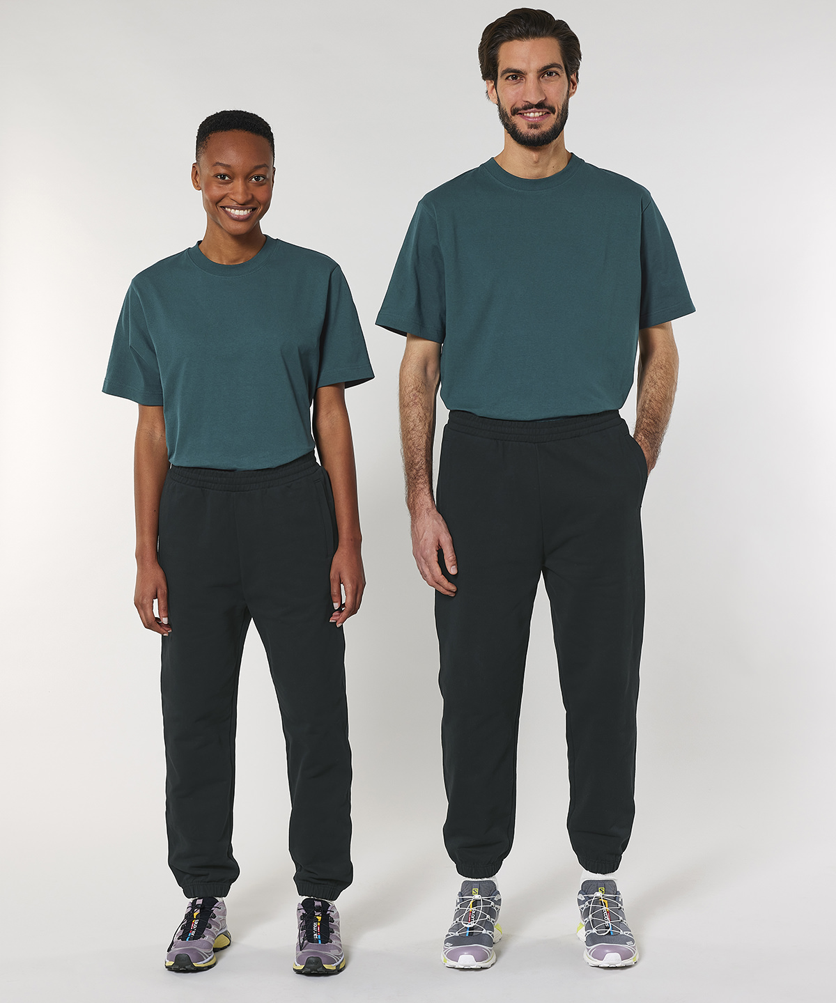 Unisex dry hand feel sweatpants in a relaxed fit. Self-fabric elasticated waistband and leg cuff opening. Flat drawcords in matching body colour with end folded for clean finish. Drawcord placement at inside waistband. Embroidered eyelets. Front welt pockets. Patch pocket at back. Side seam and leg cuff with double needle topstitch. GOTS certified, OEKO-TEX certified, Vegan certified, Fairwear.