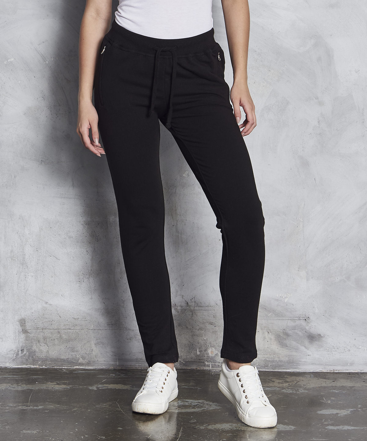 Modern tapered slim fit. Open hem. Front pockets with YKK zips. Elasticated waistband with outer self – coloured drawcords. Simple tear out label makes it perfect for rebranding. Soft Cotton faced fabric creates ideal printing surface. Worldwide Responsible Accredited Production (WRAP) certified production. WRAP certified. SEDEX certified. Vegan certified.