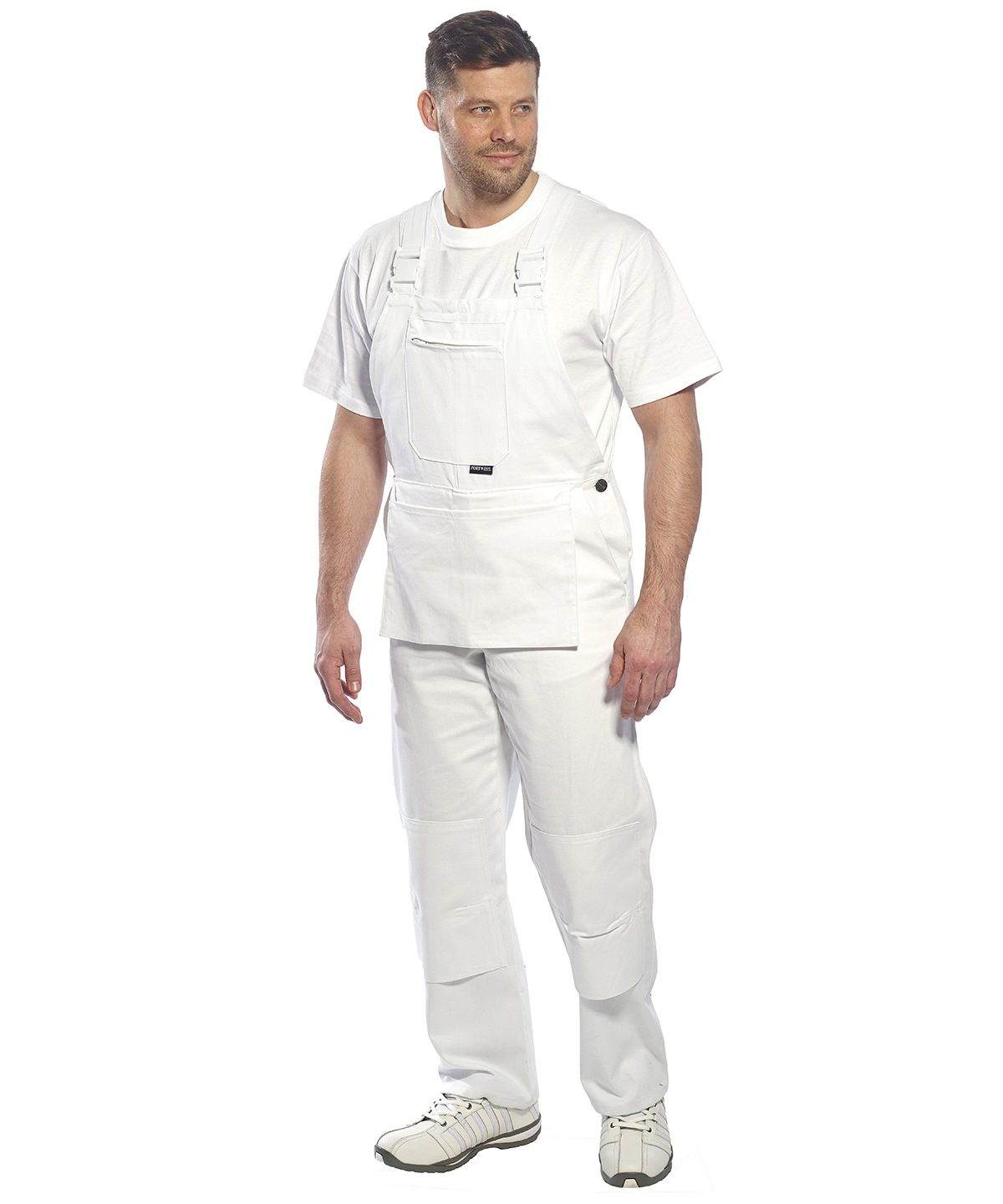 A modern new design for today’s craftsman, this functional garment embodies the latest features to ensure that every need is catered for. Made with 100% pre-shrunk cotton to provide good protection against paint spills. Features include a bib pocket with zip, one large front pouch pocket, knee pad, hip and rule pockets, elasticated back section and plastic non-corrosive buckles. WRAP certified. Oeko-Tex certified. Reach certified. SEDEX certified.